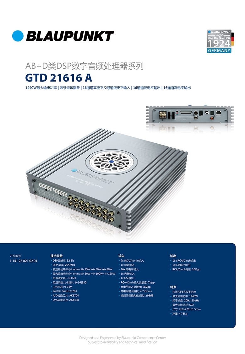 德國藍寶(BLAUPUNKT)大功率高清16路DSP功放 GTD 21616 A